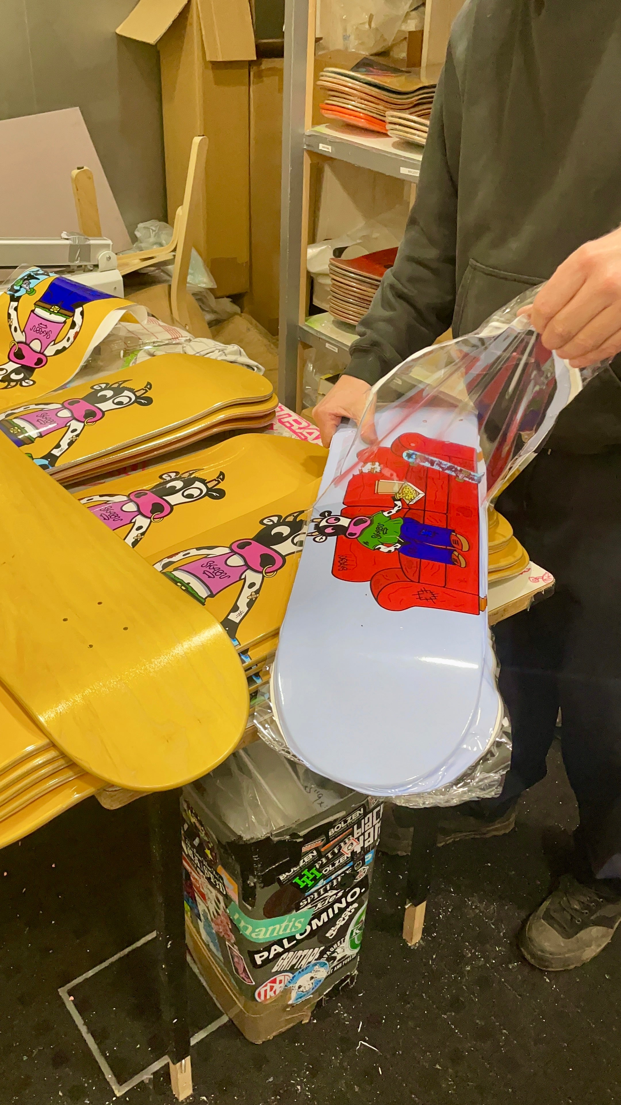 Seit November 2022 bedrucken wir T-Shirts, Pullis, Beutel und mehr per Siebdruck selber. In Zukunft wollen wir nicht nur diese Produkte, sondern auch eigene Skateboard-Decks verkaufen, Skate-Events organisieren und uns so eine eigene Skatemarke aufbauen.